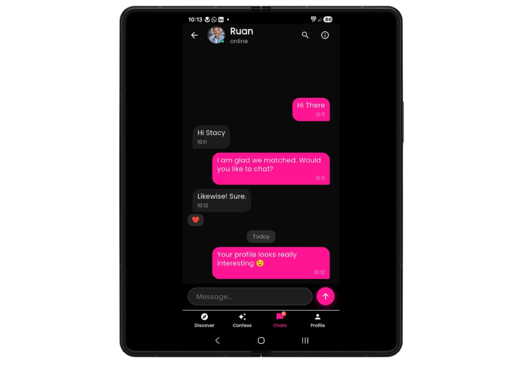 Match, chat, and confess anonymously.